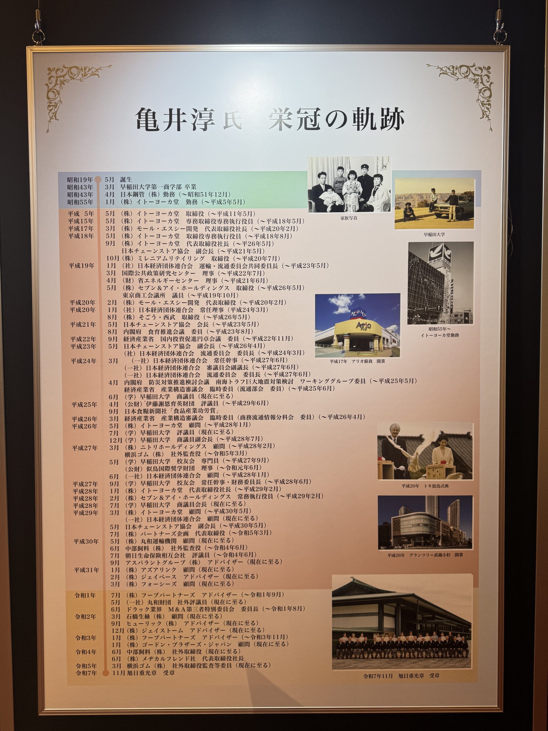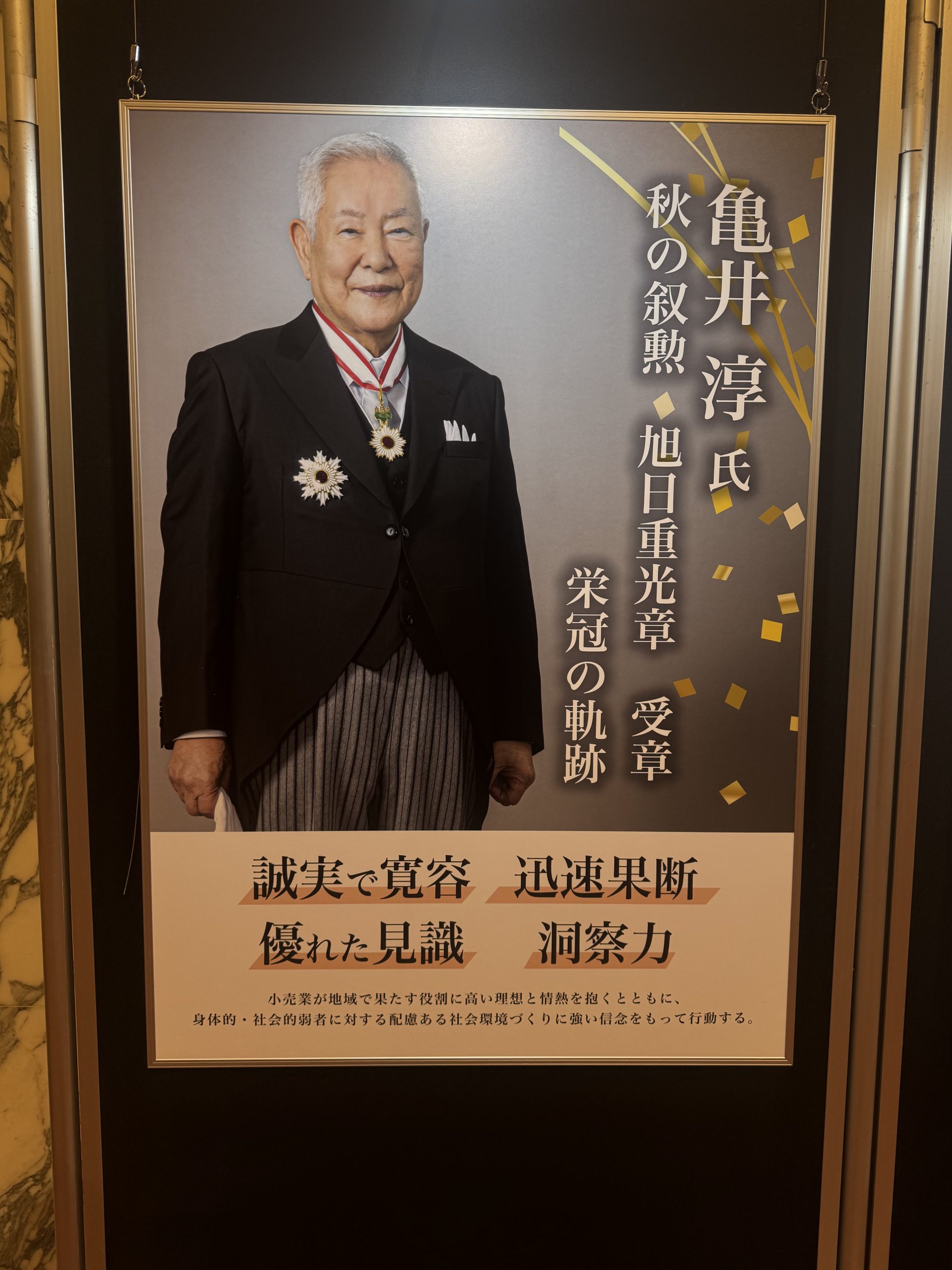 亀井淳様の旭日重光章ご受章、